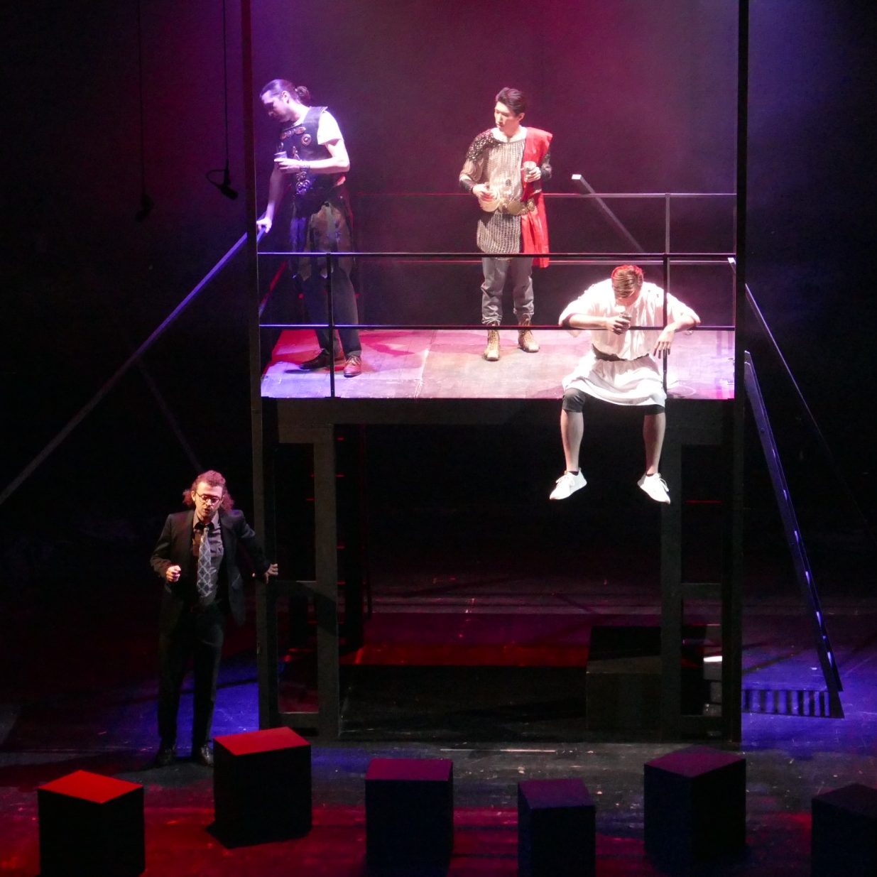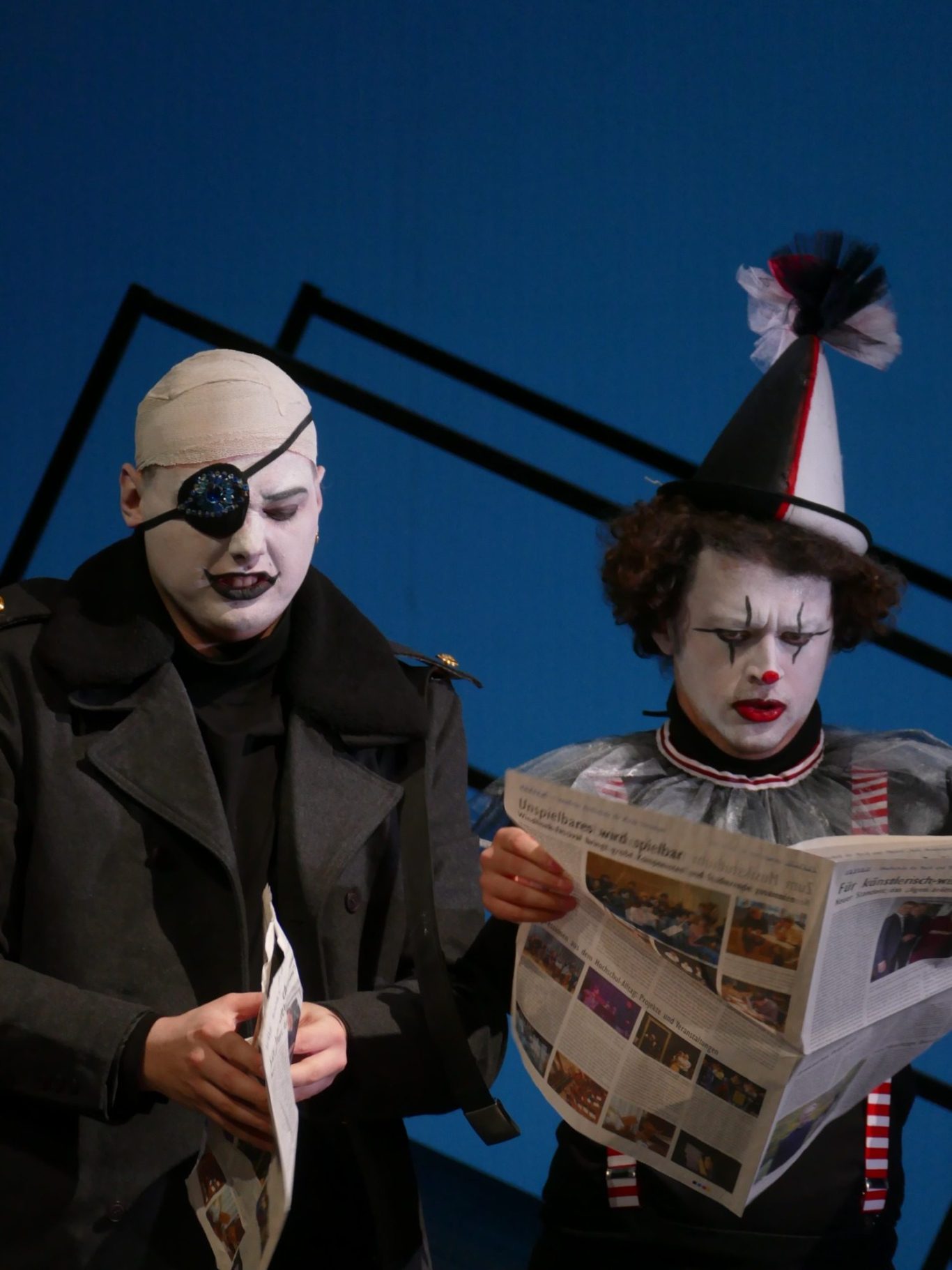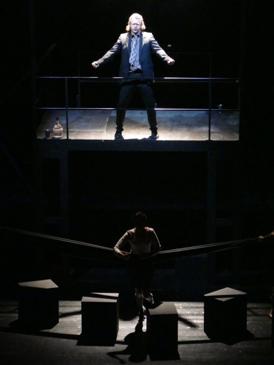 Unsere Regisseurin Katharina Thoma wollte eine gewisse Distanz zur grauenvollen und hochdramatischen Geschichte der Vergewaltigung der Lucretia (510 v. Chr.) erzeugen. So fungierten in dieser Inszenierung der Male und der Female Chorus als Lehrpersonen, die mit einer Klasse von Studierenden (darunter alle anderen Figuren) die Ereignisse (wie eine Schultheaterinszenierung) nachstellen. Dieses Vorhaben gerät allerdings aus den Fugen und alle Beteiligten lassen sich zu sehr von der Handlung mitreißen und verlieren sich in ihren Charakteren.