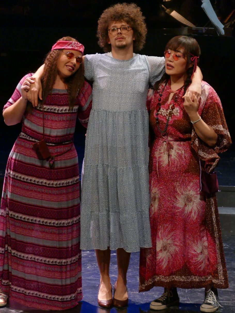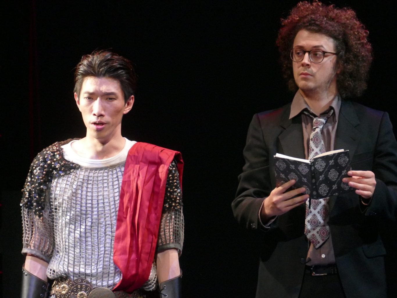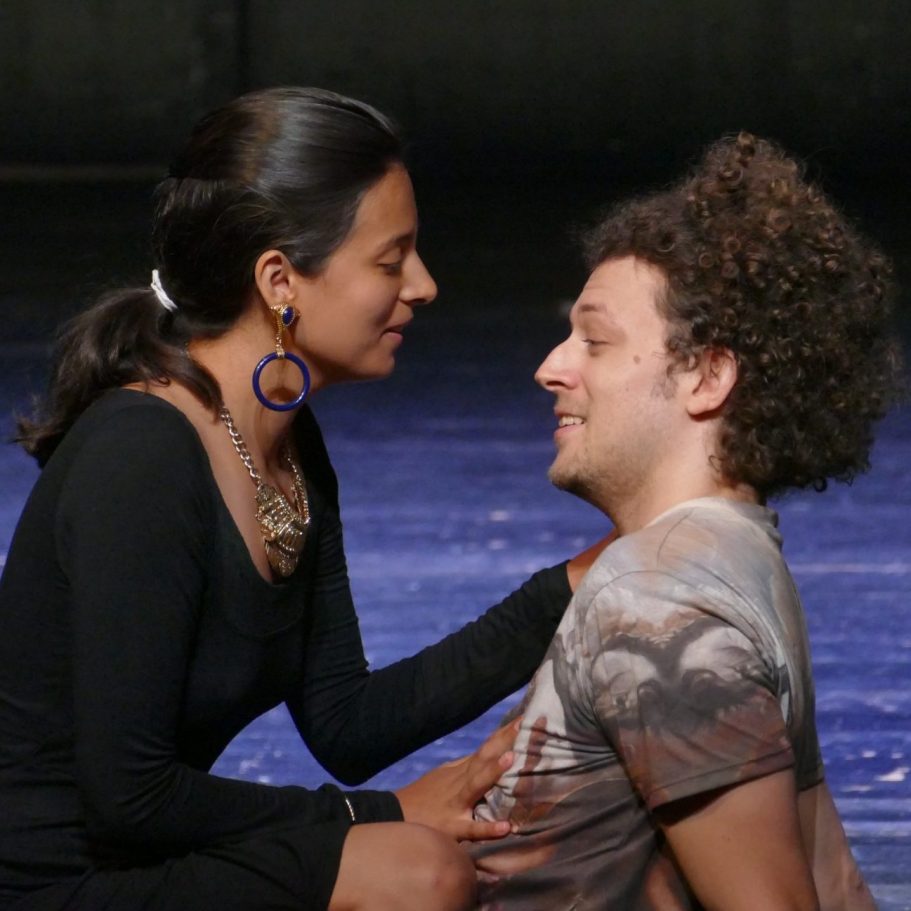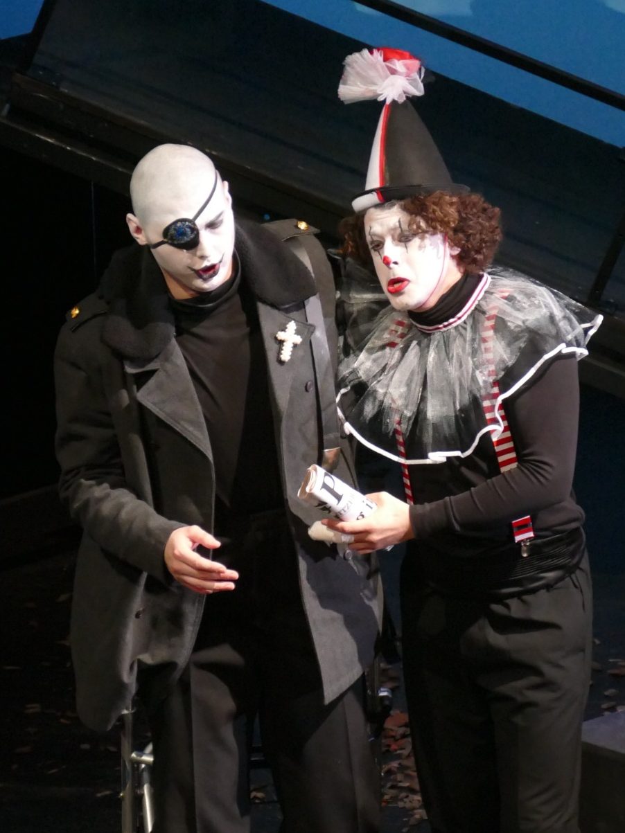 Unsere Regisseurin erweiterte das eigentlich rein freundschaftliche Bündnis zwischen Orpheus und Eurimedes. So wird sich Eurimedes in dieser Inszenierung bewusst, dass er echte Gefühle der Liebe für Orpheus entwickelt und damit seine geschlechtliche Identität hinterfragt. Er will Orpheus gefallen und beginnt daraufhin Frauenkleider zu tragen und sich zu schminken. Als Orpheus aber immer tiefer und wahnhafter in die Unterwelt hinabsteigt, um seine Geliebte zu retten, erkennt Eurimedes die Sinnlosigkeit seiner Bemühungen und zerreißt aus Frust sein Kleid und beklagt seine wechselhaften Gefühle und unerfüllten Hoffnungen.